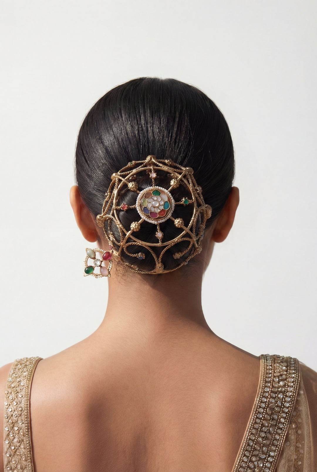 Nitya kundan hair bun cage