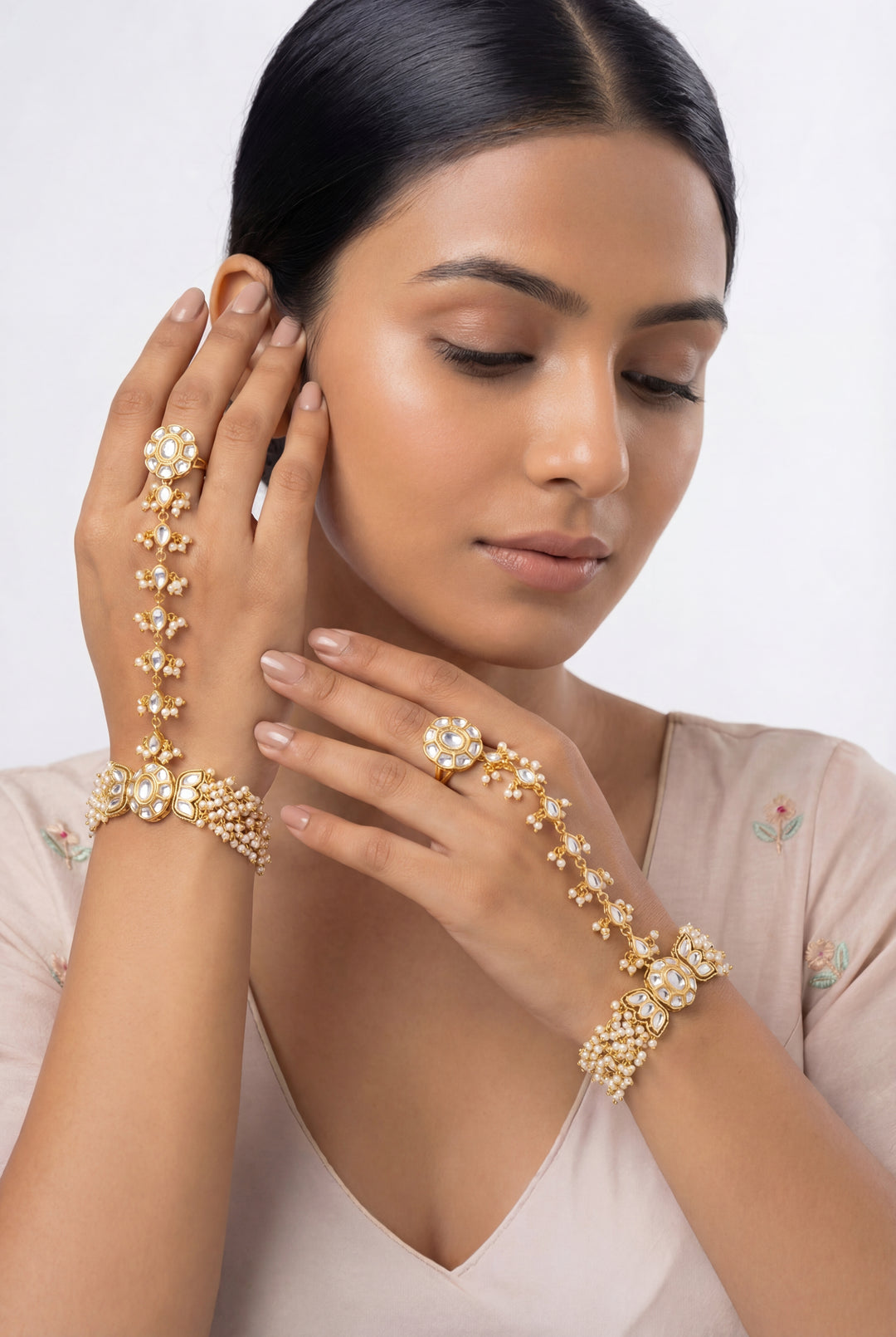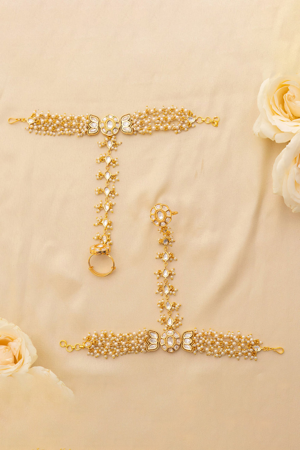Vedhira pearl kundan hathphool