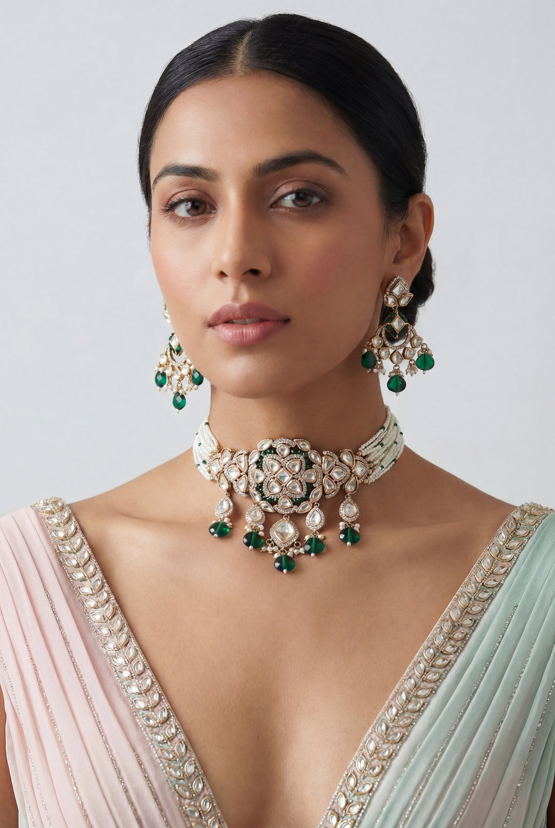 Vrishti green kundan choker